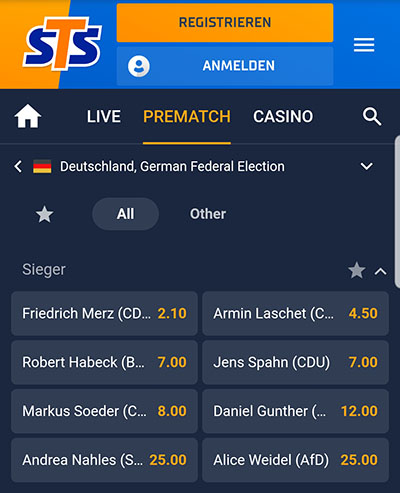 Falls Sie weiterhin an Kramp-Karrenbauers Vorhaben glauben, Parteiführung und Kanzlerschaft zu einen, sollten Sie einen Blick auf den von der Wettbasis getesteten Wettanbieter STS werfen. Aktuell stehen dort Wetten auf den nächsten Kanzler zur Verfügung, die in solch einem Falle mit dem CDU-Kanzlerkandidaten Hand in Hand gehen.