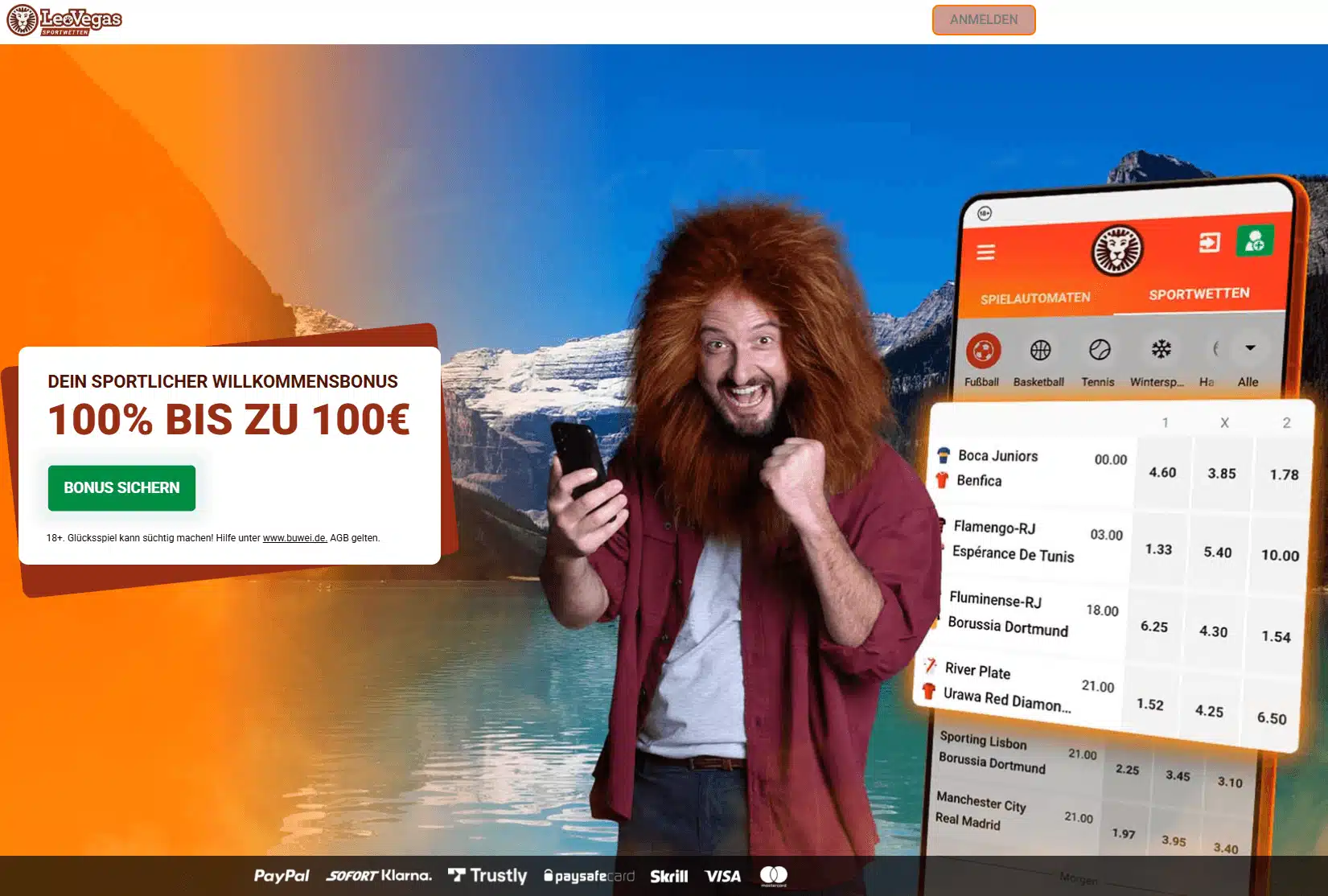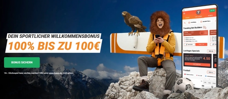 LeoVegas lockt neue Kunden mit dem Standard-Wettbonus von 100 % bis 100 €. Dieser wird von der Mehrheit der Buchmacher angeboten. Wer zum Beispiel 100 € einzahlt, bekommt 100 € Bonus. Die Mindesteinzahlung liegt bei 20€.