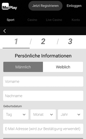 Sie wollen sich bei MoPlay registrieren und erstmals ein Wettkonto eröffnen? Dann klicken sie vor der Anmeldung auf einen entsprechenden Link auf wettbasis.com. Sie gelangen dann nicht nur direkt zum Registrierungsformular von MoPlay, darüber hinaus können Sie nämlich auch bei Fragestellungen oder Problemen den Kundensupport von Wettbasis in Anspruch nehmen, wenn sie einmal Hilfe benötigen.