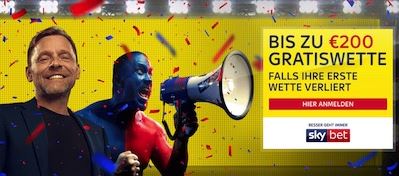 Registrieren Sie sich kostenlos bei Sky Bet und eröffnen Sie erstmals ein Wettkonto. Der Sportwetten-Anbieter bietet einen Willkommensbonus bis zu einem Betrag von 200 Euro (als Gratiswette) an.