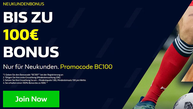 • Nur für Neukunden/innen. 100% Bonus bis zu 100€. Mind. Einzahlung: 10€. 18+ Weitere Konditionen gelten