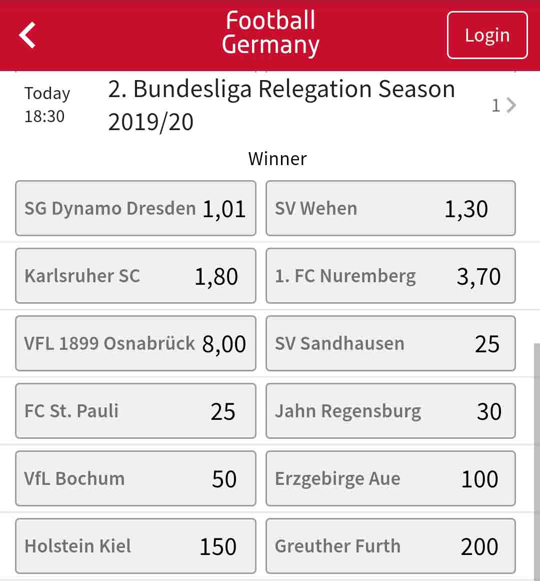 2. Bundesliga 2019 / 2020 – Abstieg – Wettquoten *