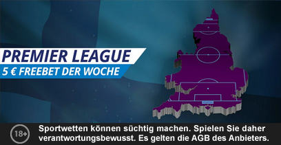 - Nach dem Erhalt muss die Freiwette binnen sechs Tagen auf die Premier League gespielt werden.