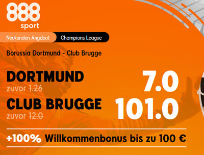 888Sport erhöht CL Quoten für Dortmund oder Brügge + 100€ Bonus