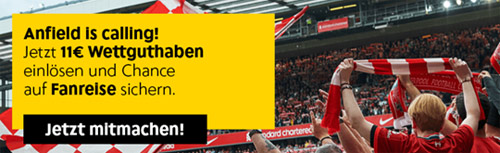 Auch Interwetten überschlägt sich im Weihnachtsmonat mit etlichen Angeboten für seine Kunden und greift tief in die eigenen Taschen. Beispielsweise serviert der Buchmacher mit deutscher Wettlizenz eine Freebet von 11 € via Gutscheincode „LFCReise“. Alle teilnehmenden Kunden, die die Aktion in Anspruch nehmen, haben zudem die Chance auf eine Fanreise in die Legends Lounge nach Anfield. Das Angebot gibt’s bei Interwetten noch bis zum 12. Dezember 2023.