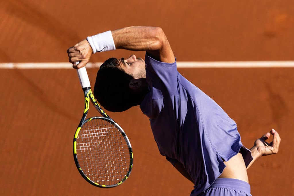 Carlos Alcaraz schlägt beim Rom Masters auf. Gehört er zu den Titelfavoriten? (© ZUMA Press, Inc. / Alamy Stock Photo)
