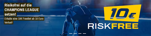 Wird die Champions League Wette verloren, erfolgt die Buchung der 10 € Gratiswette bis 15:00 Uhr am Folgetag. Das gutgeschriebene Wettguthaben ist mindestens 2-mal vor einer Auszahlung umzusetzen. Alle weiteren Infos sind direkt auf der Website des Sportwetten Anbieters zu finden. Es gelten die AGB. | 18+