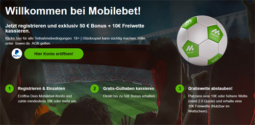 In unserem Mobilebet Bonus Test oder aber auf der Website des Anbieters lassen sich weitere Infos sowie Details nachlesen. Es gelten die AGB. | 18+