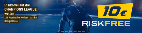 Ohne eigenes Risiko lässt sich derweil beim Buchmacher AdmiralBet auf den Start der Champions League wetten (Aktionszeitraum: 19.09.2023 bis 20.09.2023, 23:59 Uhr). Die erste Wette / Ticket auf die Königsklasse im Aktionszeitraum spielen AdmiralBet Kunden ohne Risiko. Berücksichtigt wird die CL Wette allerdings nur, wenn folgende Kriterien erfüllt werden: Mindestquote 2.00 und Mindesteinsatz 10 €.