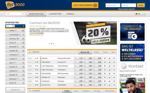 An dieser Promotion können alle registrierten Nutzer teilnehmen. Das wettbegeisterte Publikum hat somit die Chance, einen Cash Back von 20% zu ergattern. Darüber hinaus offeriert Bet3000 eine ganze Reihe weiterer Aktionen für Bestandskunden. Aus diesem Grund kommen nicht nur Neukunden bei diesem Sportwetten Anbieter auf ihre Kosten.