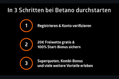 Wichtig: Um die Freiwette zu aktivieren, muss bei der Anmeldung der Betano Freebet Code „BETMAX“ angegeben werden!