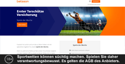 Der maximale Betsson Cash Back Bonus bemisst 25€ und kommt zum Tragen, falls Ihr Favorit auf den ersten Treffer das erste Tor nicht erzielt aber zu einem späteren Zeitpunkt im Match trifft. Die Erstattung erfolgt innerhalb von 48 Stunden nach Spielauswertung in Echtgeld. Die Gutschrift unterliegt somit keinen weiteren Umsatzbedingungen und kann direkt abgehoben werden.