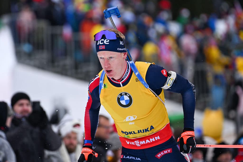 Es duellieren sich zwei Norweger um den Sieg im Gesamtweltcup: Sturla Holm Laegreid und Johannes Thinges Boe.