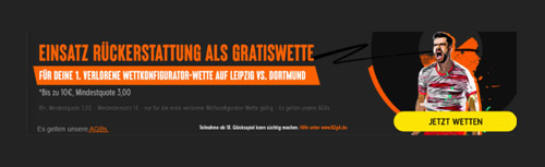 Zum Bundesliga Topspiel RB Leipzig gegen Dortmund zieht 888Sport die Spendierhosen an und gewährt eine Cash Back Garantie. Der Cash Back findet Anwendung, insofern die qualifizierende Wette verloren gilt. Als maximale Geld zurück Prämie sind 10 € festgesetzt.