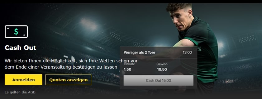 Man kann also während eines Matches oder im Verlauf einer Kombiwette jederzeit für ein Angebot des Buchmachers seinen Schein zu Geld machen. Dadurch können Gewinne abgesichert oder Verluste minimiert werden.