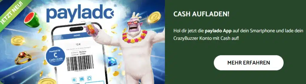 Es steht Usern bei Crazybuzzer Paylado nicht nur für die Einzahlung zur Verfügung. Auch die Auszahlung ist Usern auf diese Weise möglich.