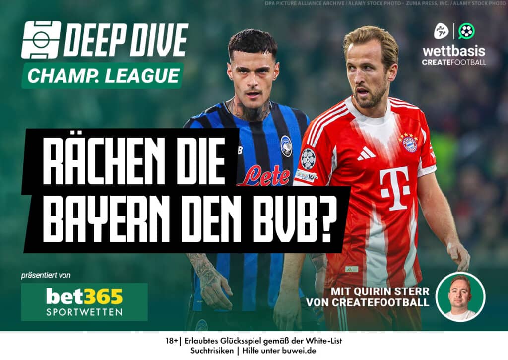 Daten-Experte Quirin Sterr von CREATEFOOTBALL analysiert im YouTube-Video exklusiv für die Wettbasis und bet365, was Atalanta Bergamo ausmacht, vor welchen Schlüsselspielern gewarnt werden muss und wie Bayerns Spielweise und die Keys to Win zum Erfolg führen können.