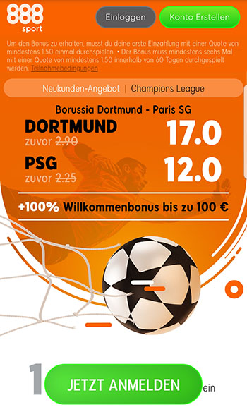 Dortmund gegen PSG - Wettquoten * für 'Sieg zu Null'