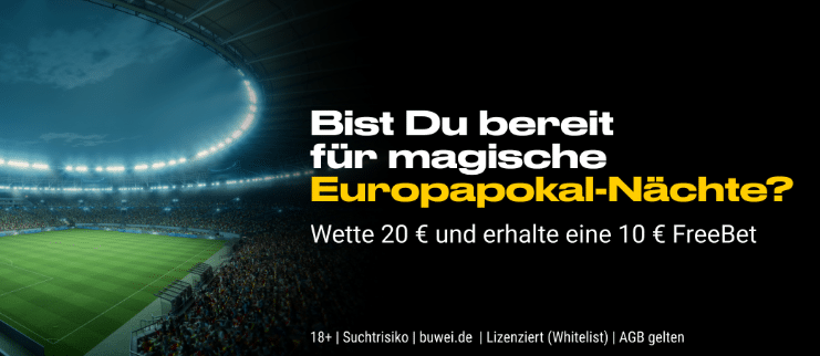 Der internationale Buchmacher Bwin geht zu den europäischen Wettbewerben ebenso mit einer maßgeschneiderten Promo ins Rennen. Auf Neukunden und Bestandskunden wartet eine 10 € Freebet.