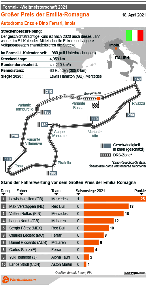 Key-Facts – Formel 1 Großer Preis von Emilia-Romagna 2021 Wetten