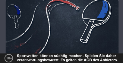 Loggen Sie sich bei ComeOn ein und schließen Sie drei Live Einzelwetten auf Tischtennisbegegnungen Ihrer Wahl ab. Jede Livewette besticht durch einen Mindesteinsatz von 10€ und zudem zeigt sie eine Mindestquote von 1,50 auf. Die drei Live Einzelwetten müssen auf drei unterschiedliche Tischtennisspiele gesetzt werden.