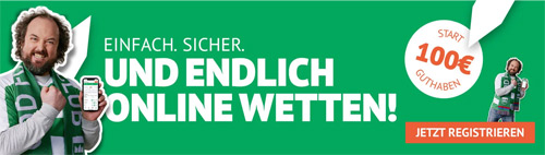Das deutsche Ur-Gestein unter den Traditionsbuchmachern begrüßt neue Kunden in dieser Länderspiel-Woche mit einem vielversprechenden 100 % Willkommensangebot zum Kennenlernen von bis zu 100 €! Das Angebot wird auf die erste Einzahlung geboten, die der Bookie glatt verdoppelt.