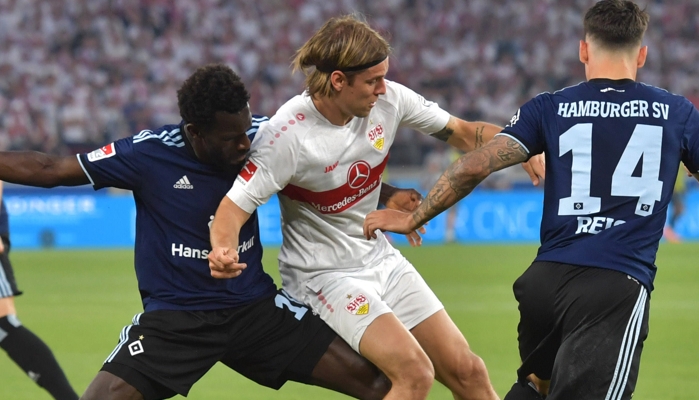 Danach dominierten die Stuttgarter auf weite Strecken das Bundesliga Relegationshinspiel und stehen dank des 3:0 kurz vor dem Klassenerhalt.