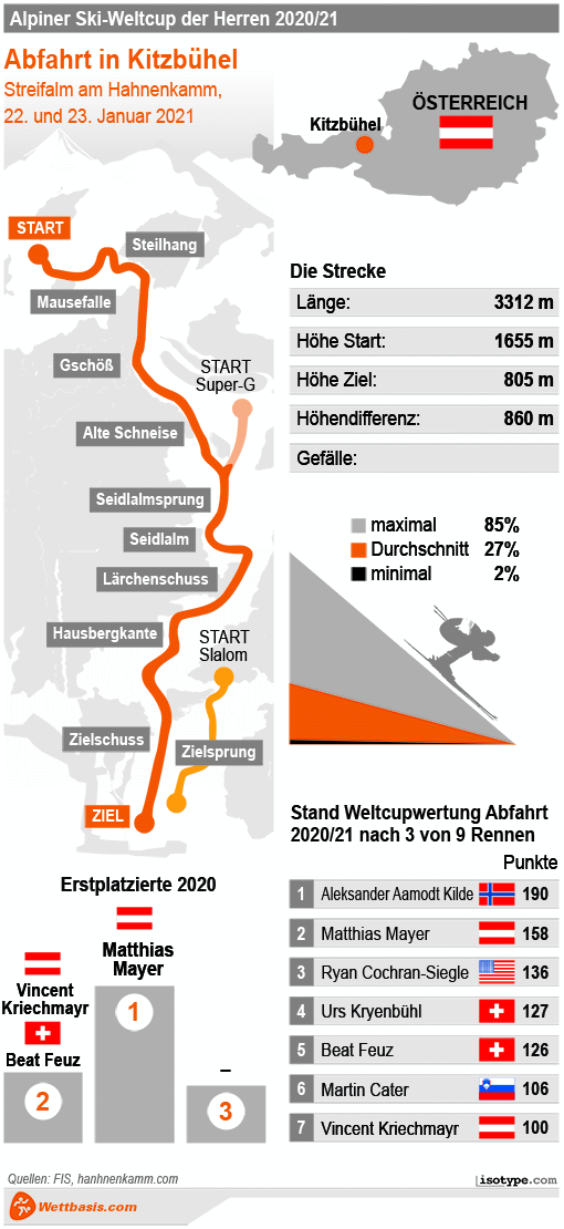 Infografik Kitzbühel Abfahrt am 23.01.2021: