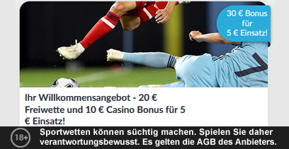 Die beiden 10€ Freiwetten sind über einen Zeitraum von sieben Tagen gültig und verfallen danach. Lediglich der aus den Freiwetten resultierende „Netto-Gewinn“ lässt sich auszahlen. Die Freiwetten können für eine Wette oder in mehreren kleineren Teilbeträgen genützt werden.