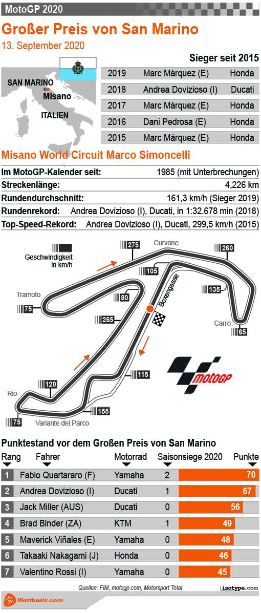 Key-Facts – MotoGP Großer Preis von San Marino 2020 Wetten