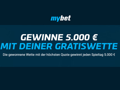 Mybet bietet seinen zahlreichen Kunden die Möglichkeit, wöchentlich Gratiswetten auf ausgewählte Spiele abzuschließen und so am Gewinnspiel teilzunehmen. Ziel des wöchentlichen Mybet 5000 Euro Tippspiels ist es, die höchste gewonnene Quote zu erbringen. Somit gilt es ein gewisses Fachwissen sowie den notwenigen Mut an den Tag zu legen, um vielleicht erfolgreich zu sein.