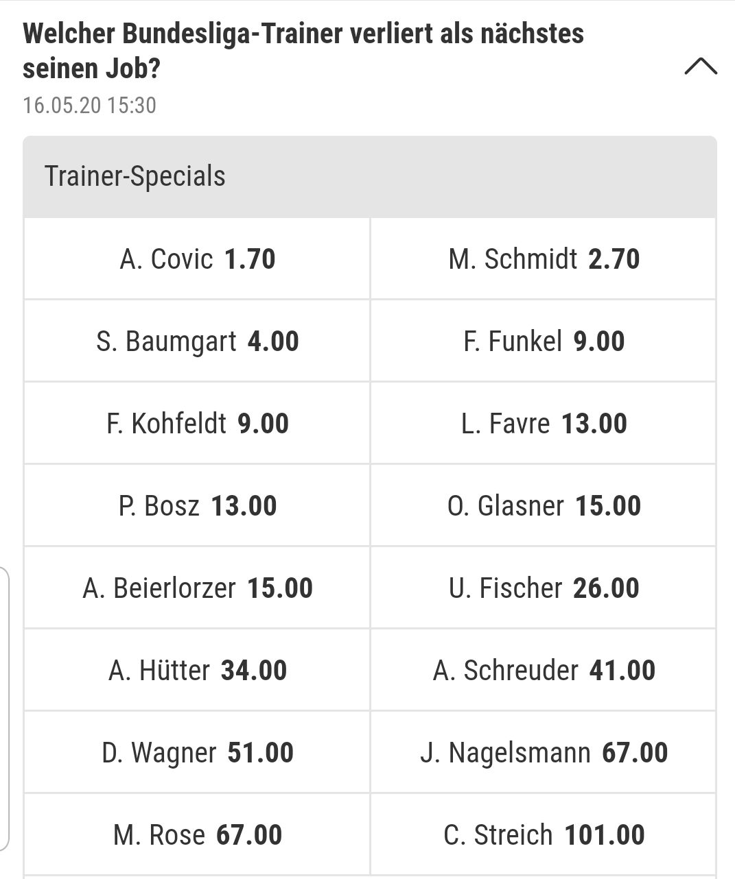 Nächste Trainerentlassung in der Bundesliga 2019/20 – Wettquoten *