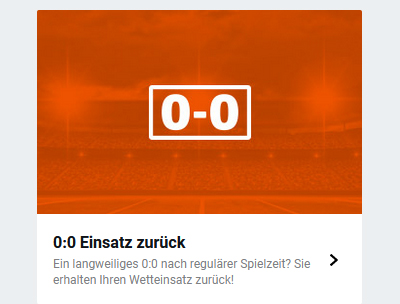 Auch diese Sportwetten Bonus Aktion von Betano lässt sich hervorragend auf die Fussball Wetten der Nations League, Länderspiele oder EM-Qualifikation anwenden. Das Prinzip ist einfach und schnell erklärt. Bei einem langweiligen 0:0 Unentschieden nach der regulären Spielzeit erhalten Betano Kunden Ihren Wetteinsatz zurück.