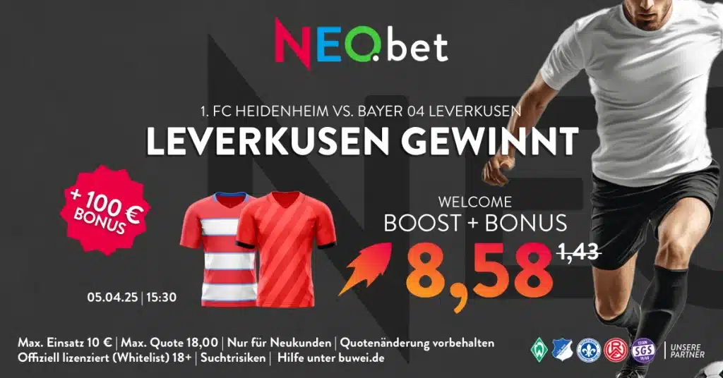 NEO.bet 500% Quotenboost: Mit exklusiver Quote von 9.00 auf den Sieg von Leverkusen in der Bundesliga wetten