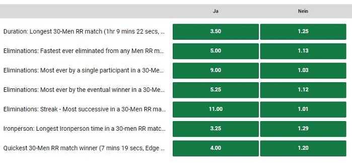 Die Wettauswahl zu den Royal Rumbles lässt ohne Zweifel keine Wünsche übrig. Detailiierte Infos zu den einzelnen Wettmöglichkeiten findet ihr auf der Webseite von Unibet.