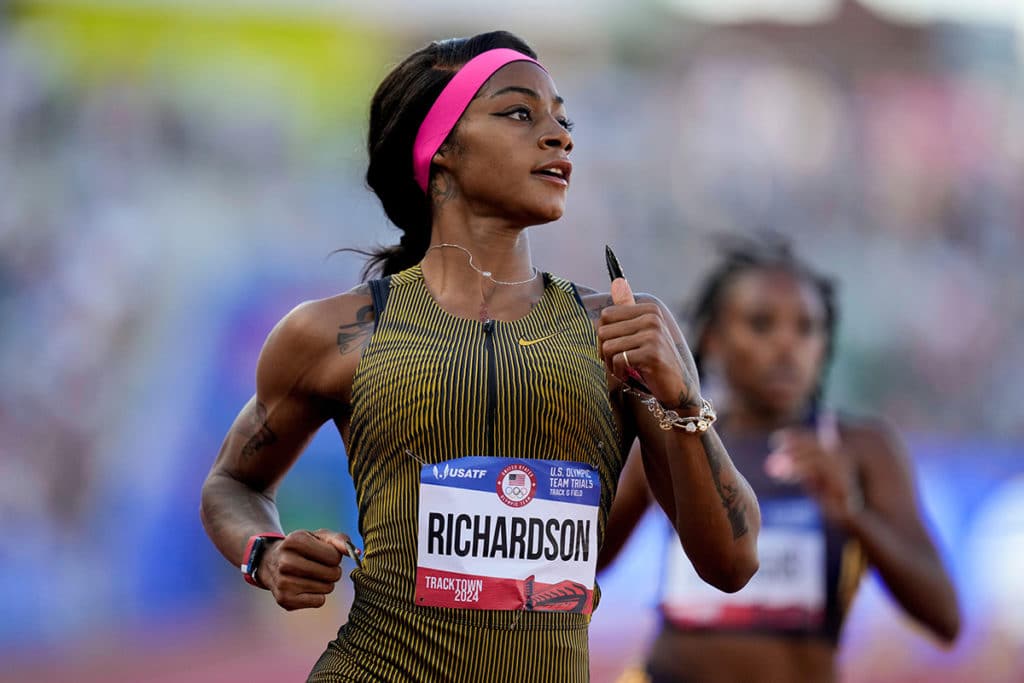 Ihre sportliche Karriere schien das allerdings wenig zu beeinflussen. Auch nach der High School lieferte Richardson weiterhin starke Leistungen ab und wurde 2019 Erste bei den NCAA Division I Women’s Outdoor Track and Field Championships.