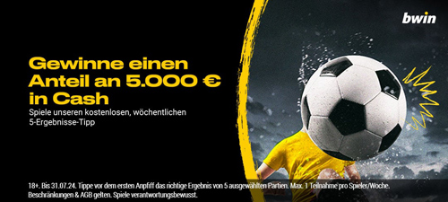 Liegt man mit allen Tipp-Vorhersagen richtig, gewinnt der Teilnehmer einen Anteil am 5.000 € Bargeld Jackpot. Aber auch schon bei weniger korrekten Tipps lassen sich Freebets in unterschiedlicher Höhe absahnen. Alle Preise werden den Teilnehmern binnen 48 Stunden nach Beendigung der letzten ausgewählten Begegnung gutgeschrieben. Mitmachen können sowohl Neukunden als auch bereits bestehende Bwin Kunden.