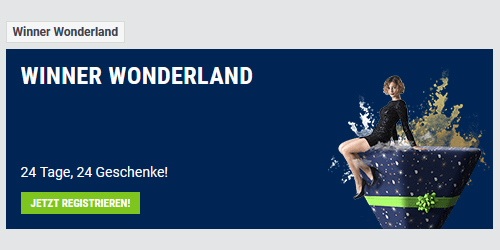 Advent, Advent… Auch Bet-at-home fehlt natürlich nicht in der Riege der Prominenten, die mit einem Sportwetten Adventskalender überzeugen können. Dieses Jahr entführt der online Bookie mit deutscher Wettlizenz seine Kunden ins Winner Wonderland. 24 Tage darf täglich ein Türchen geöffnet werden, wo es dann Angebote für Sportwetten sowie Gewinnspiele mit coolen Sachpreisen gibt. Einfach jeden Tag auspacken und staunen!