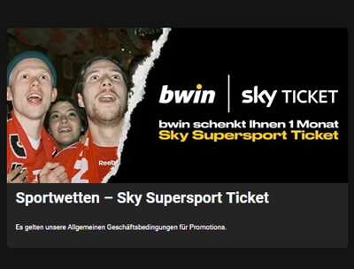 Sobald die 30€ im Sportwetten Bereich von Bwin zu den eben genannten Bedingungen umgesetzt wurden, erhält der Wettinteressierte einen Gutschein-Code für ein Sky Supersport Ticket. Grundlegend hat das Ticket einen Wert von 29,99€ und entspricht somit genau dem Wetteinsatz. Wobei der Vorteil von Bwin auf der Hand liegt. Sie erhalten das Ticket unabhängig vom Ausgang der qualifizierenden Wette(n). Mit dem Quäntchen Glück sahnen Sie einen satten Gewinn ein und erhalten zudem das Sky Supersport Ticket für einen Monat kostenlos.