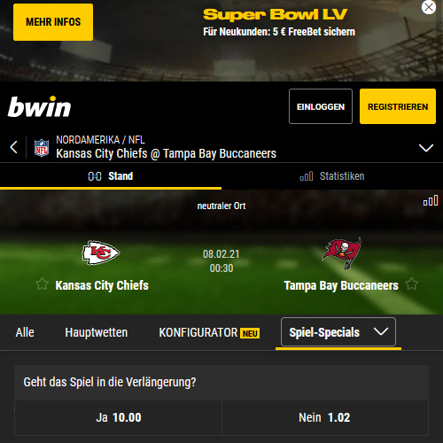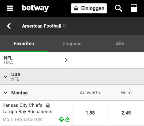 Top Anbieter für NFL Wetten zum Super Bowl sind unserer Meinung nach NEObet, Betano, Merkur Bets, Bet365 oder auch ODDSET.