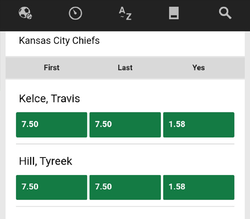 Neben Barkley werden auch die Chancen auf einen Touchdown von Jalen Hurts (Quote 1.72), Kareem Hunt (2.15) oder Travis Kelce (2.30) hoch eingeschätzt.