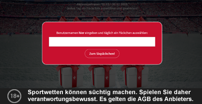 Sobald der korrekte Benutzername eingegeben wurde, besteht die Möglichkeit sich täglich eines von sechs Geschenkpäckchen auszusuchen. Einmal täglich darf an dieser Promotion teilgenommen werden.