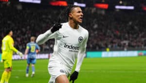 Eintracht Frankfurt (im Bild: Jean-Matteo Bahoya) ist im Viertelfinal-Hinspiel bei den Spurs zu Gast. (© Sipa US/Alamy Live News)
