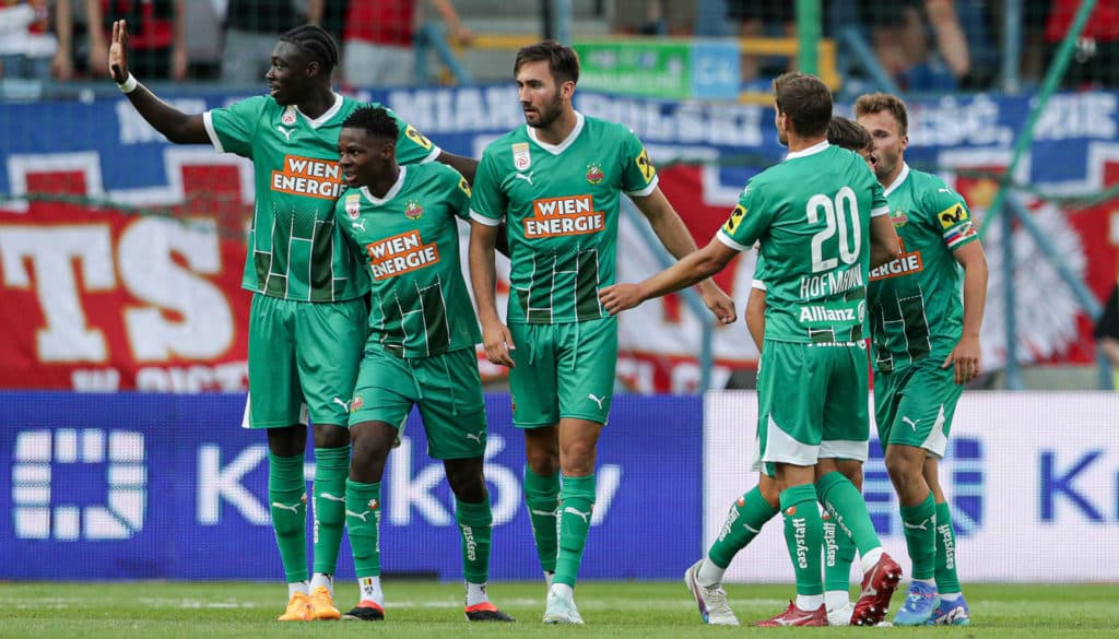 Beeindruckend traten auch die Wiener auf und ließen gegen die Polen von Wisla Krakau keinen Zweifel an den eigenen Ambitionen. Dem 2:1-Sieg auf fremdem Platz folgte ein fulminantes 6:1 daheim.