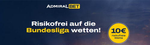 Pünktlich zum Start der neuen Bundesliga Saison macht AdmiralBet Nägel mit Köpfen und bietet die Möglichkeit, 10 € ohne jegliches Risiko auf die Bundesliga zu wetten. Teilnahmeberechtigt sind Kunden mit einem verifizierten Wettkonto.
