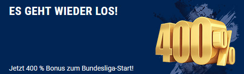 Bet-at-home lässt sich zum Bundesliga Start ebenfalls nicht lumpen und geht mit einem tollen Angebot an den Start. Der online Wettanbieter offeriert eine Einzahlungsprämie von 400 Prozent bis zu sage und schreibe 40 €. Hierbei ist jedoch darauf zu achten, dass die Aktion nur an Neukunden, die sich ab dem 01.08.2022 angemeldet haben, gerichtet ist.