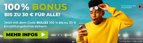 Spiele jetzt eine Echtgeld Wette mit einer Mindestquote 2,00 auf die Bundesliga und sollte der Tipp nicht aufgehen, gibt es am 08.08. bis 15 Uhr den Einsatz bis max. 10 € als Wettguthaben zurück!