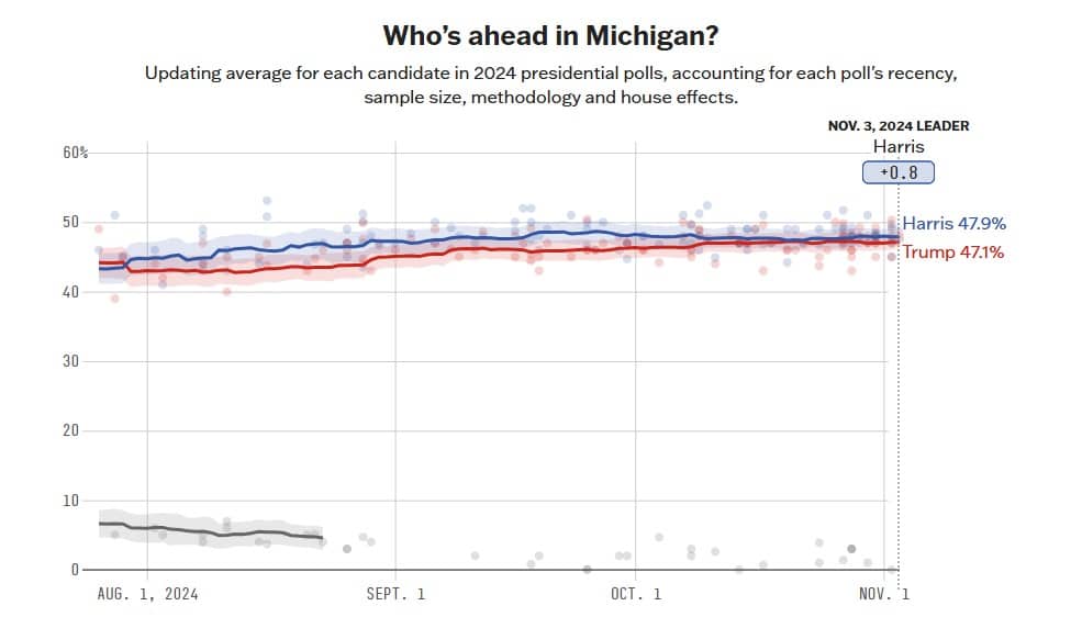 Swing State Michigan Prognose: Umfragen sehen Kopf-an-Kopf-Rennen