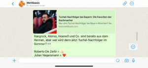 Den Usern Auf WhatsApp wird aber auch die Chance gegeben, interaktiv teilzunehmen. Anhand von Umfragen gibt es einen Einblick in die Meinung der Wettbasis-Community. Wer wird denn nun enuer Bayern-Trainer?