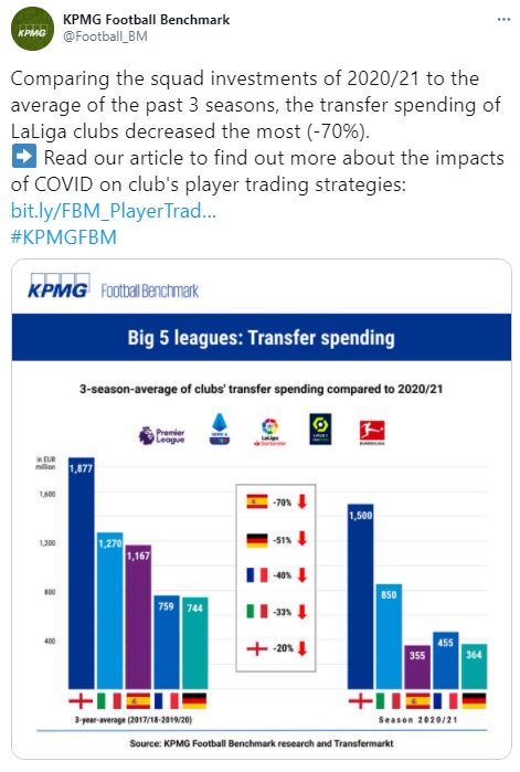 Screenshot vom KPMG Football Benchmark Twitter-Account (am 14.02.2021, 20:06 Uhr)